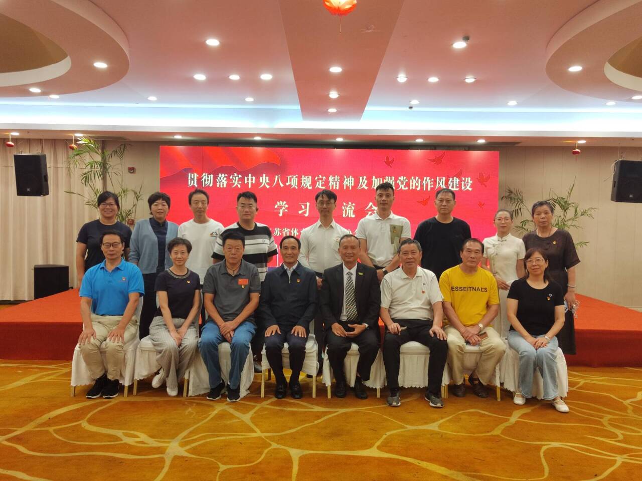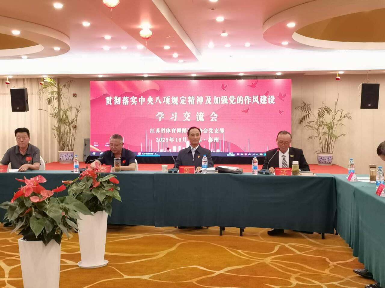 10月4日下午,江苏省体育舞蹈运动协会党支部“贯彻落实中央八项规定精神、加强党的作风建设”学习交流会在泰州靖和轩(金凤凰店)大酒店召开。泰州市体育舞蹈运动协会会长宣鸣主持了会议。会上,泰州市体育总会秘书长王卫东首先发表讲话,他说:“会议在泰州召开,是省协会对我们的信任,更是对泰州市体育舞蹈运动的推动注入了新的活力,增添新的力量。作为社团的党支部,我们必须深刻认识到肩负的责任和使命,以高度的政治责任感和历史使命感,积极投身到社团的工作中去”。市体舞协会党支部书记康少春率先交流发言,接着来自全省各地的协会党支部书记、秘书长、宣传委员陆续分享了各地开展党建工作经验与心得,江苏省体育舞蹈运动协会党支部书记高寿志作会议总结,会议间与会代表前往海军诞生地参观学习,代表们一致认为开展深入贯彻中央八项规定精神学习教育,是巩固拓展学习贯彻习近平新时代中国特色社会主义思想主题教育成果和巩固深化党纪学习教育成果、纵深推进全面从严治党的重要举措,是密切党群干群关系、巩固党的执政基础的必然要求,是推进中国式现代化的有力保障。